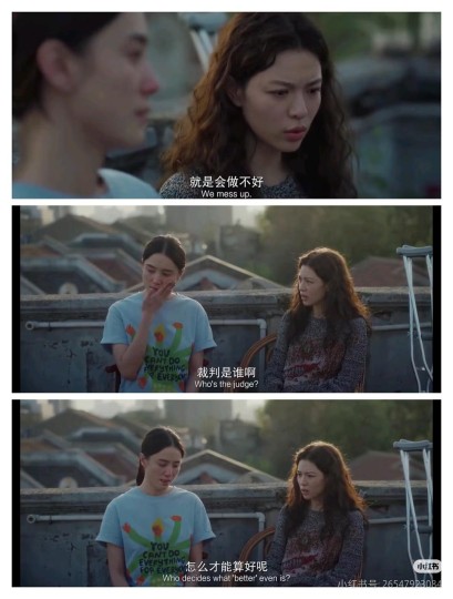 《好东西》对网暴的处理之好,在于其“去戏剧化”的真实感。铁梅的遭遇没有走向激烈的舆论对抗或反转,而是被限定在工作领域,甚至未完全侵入其生活圈。这种处理揭示了网暴的一种常态:它可能并无结局,也未必需要一场胜利来化解。 而网暴相关的视听设计也做的极其有质感,通过对铁梅失眠、铁梅小叶天台对话等切片的呈现,展现了铁梅脆弱的一面,去除了主角本身的脸谱化嫌疑。